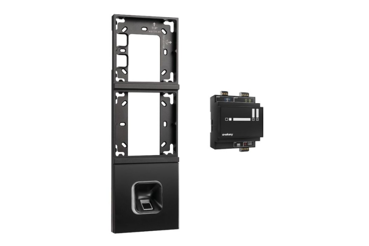 Dieses ekey Fingerprintset in Schwarz mit Glasrahmen in Anthrazit und Loxone Montagerahmen 3-fach Anthrazit ist die perfekte Wahl für stilbewusste Smart-Home-Besitzer. Es bietet modernste Fingerprint-Technologie für sicheren, schlüssellosen Zutritt und fügt sich optisch perfekt in den Eingangsbereich ein.